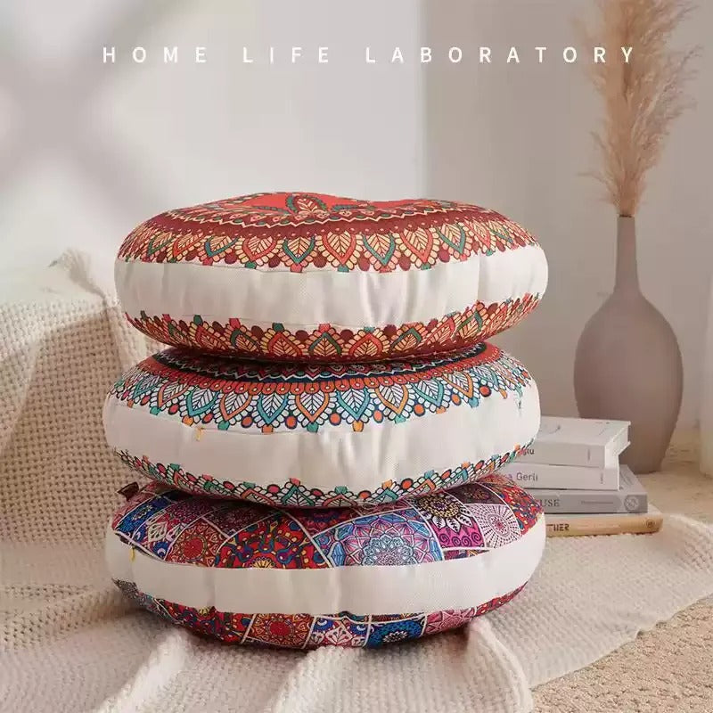 Made from high-quality cotton and hemp linen, this round cushion offers excellent breathability, softness, and durability — perfect for meditation, yoga, or casual seating.