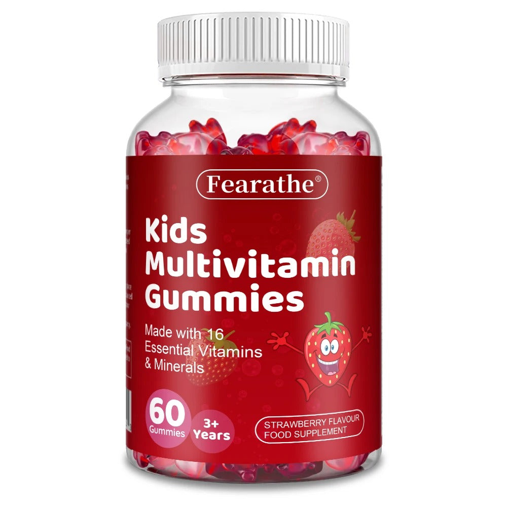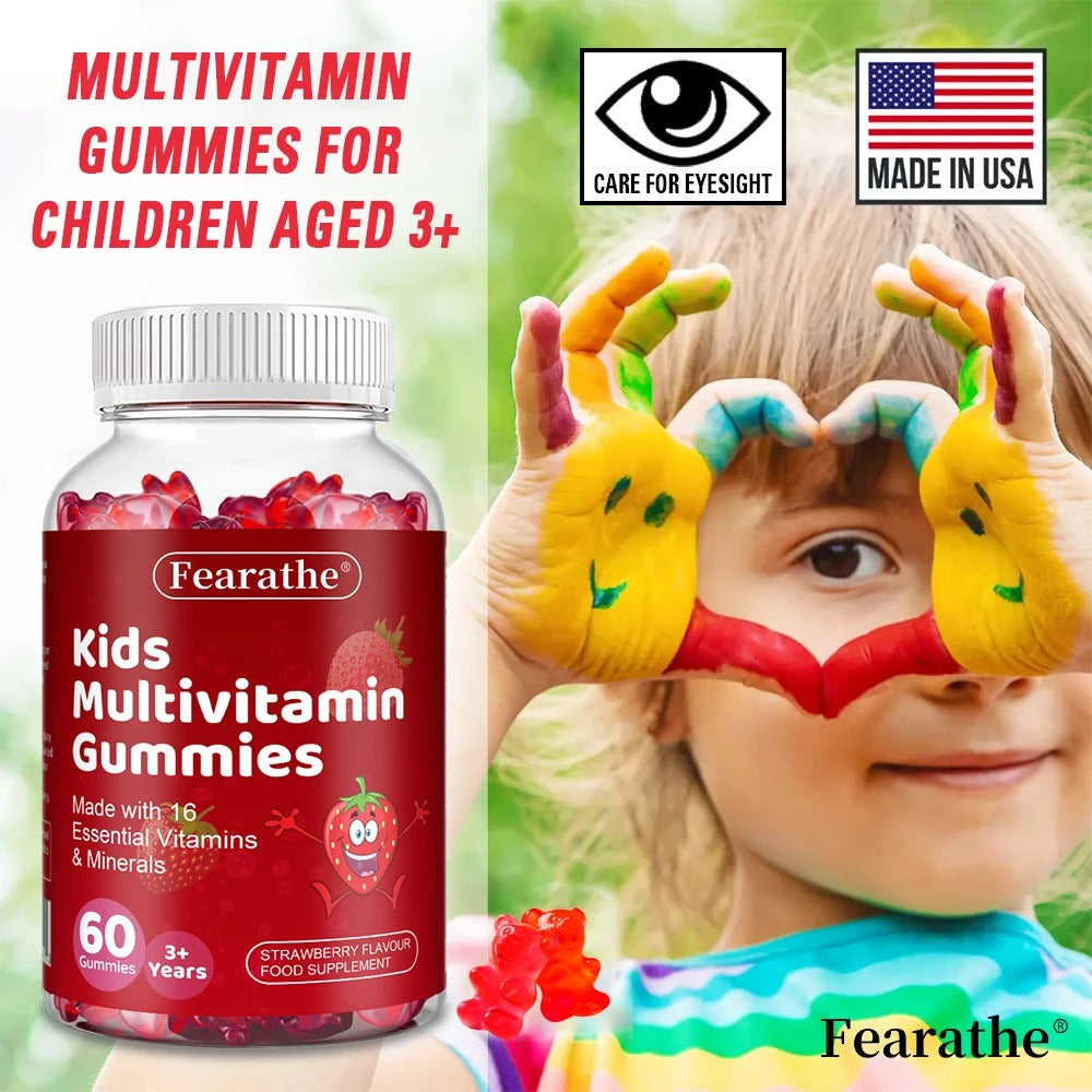 Our Kids Multivitamin Gummies provide 16 essential vitamins and minerals, including Vitamin A, C, D, B-Vitamins & Zinc, to support healthy development, strong immunity, energy, and brain function.
