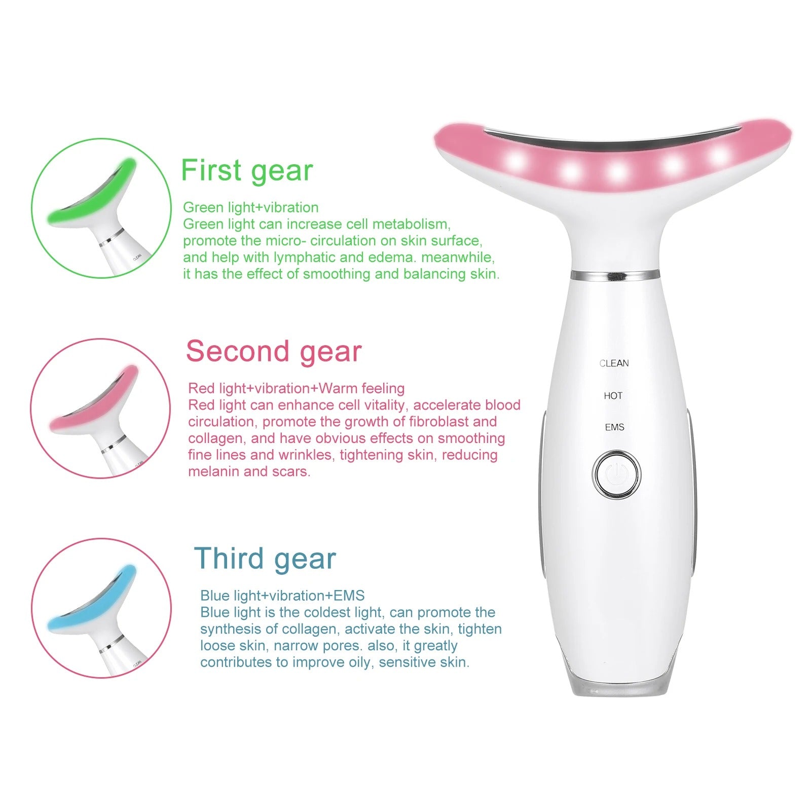 This advanced beauty tool uses warm heat therapy + micro-vibration + LED light care to boost collagen production, reduce fine lines, and improve skin elasticity — helping you achieve a tighter, younger-looking neckline.